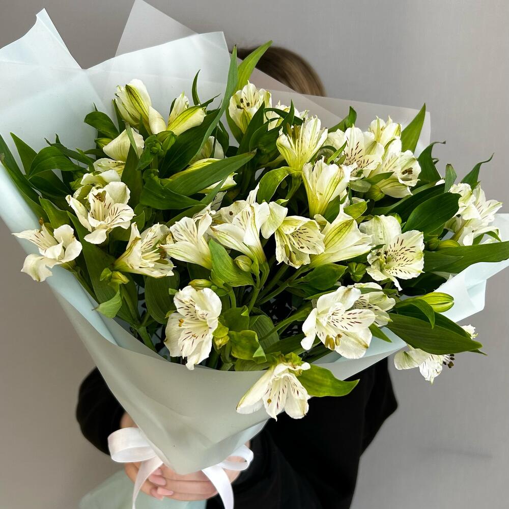 Букет из 9 белых стойких альстромерий