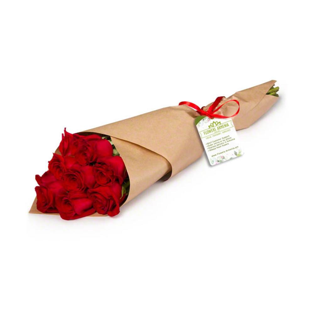 11 кустовых пионовидных роз в дизайнерской упаковке
