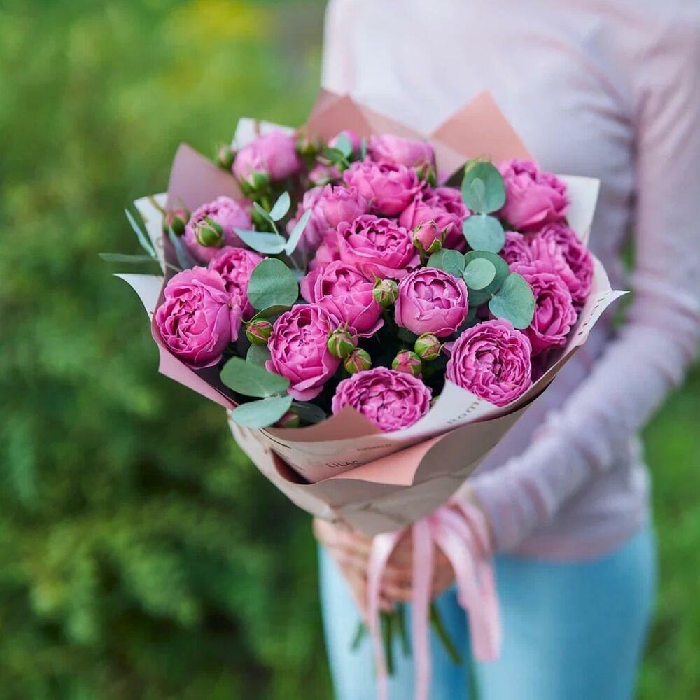 Гвоздики, Кустовые розы, Лизиантусы, Пионовидные розы, Розы