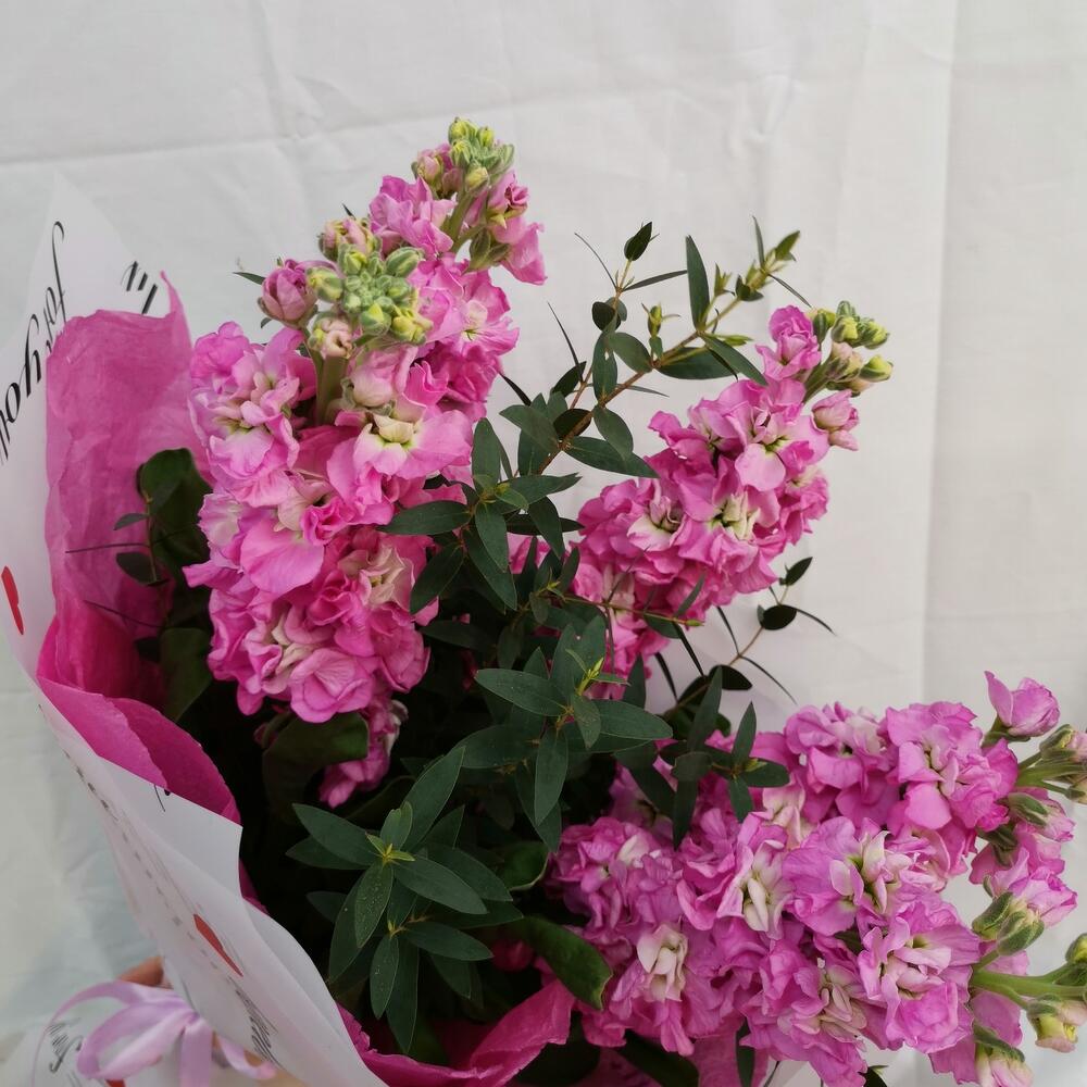 Маттиола – 5 шт.Эвкалипт – 1 шт.Лента атласная – 1 шт.Упаковка дизайнерская – 2 шт.