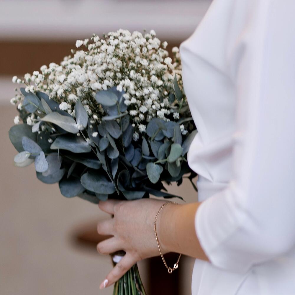 Букет невесты из гипсофилы и эвкалипта