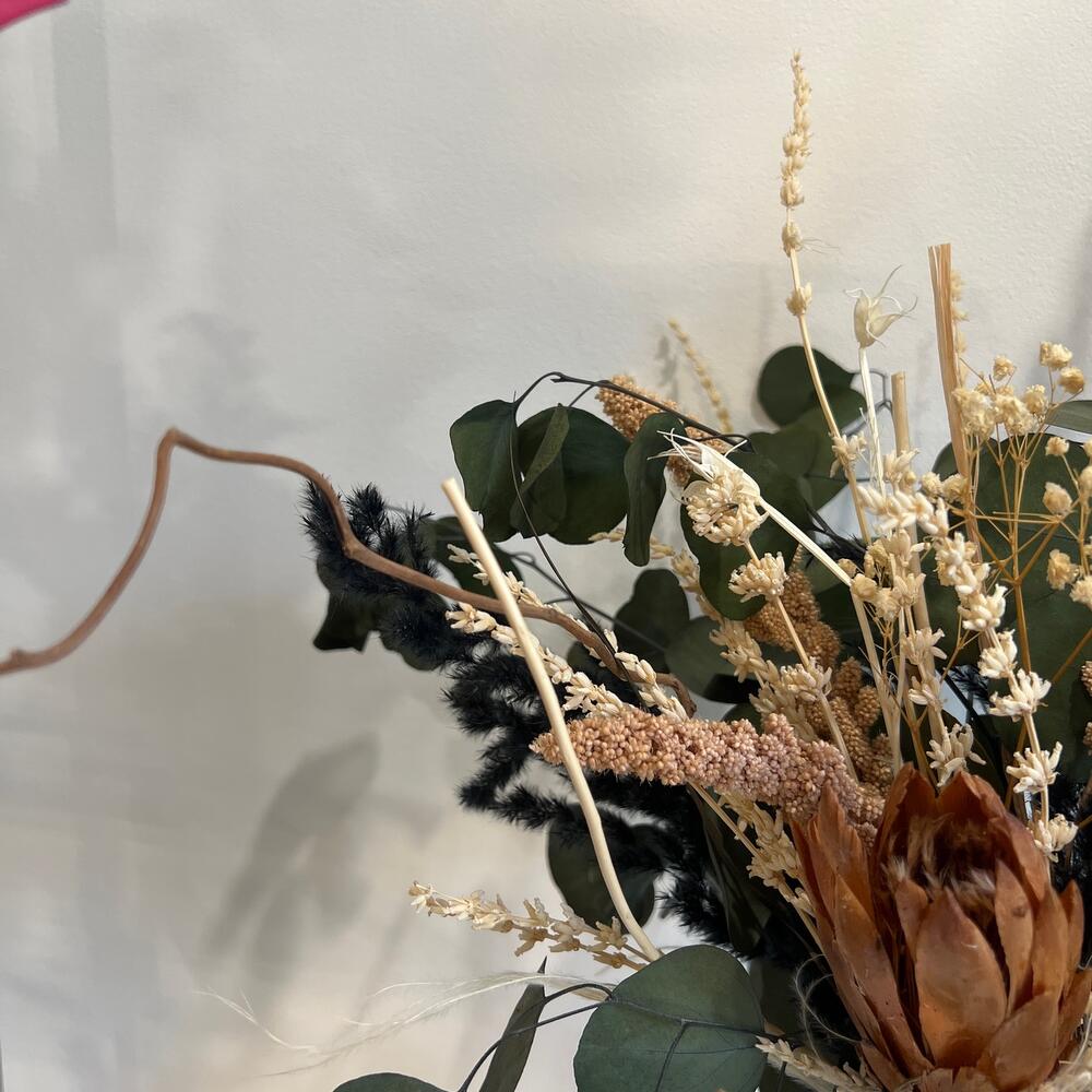 Интерьерная композиция из стабилизированных цветов и сухоцветов