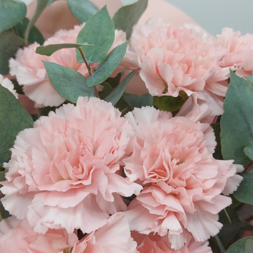гвоздика сортовая (диантус) – 15 шт.Эвкалипт – 7 шт.Упаковка дизайнерская – 1 шт.