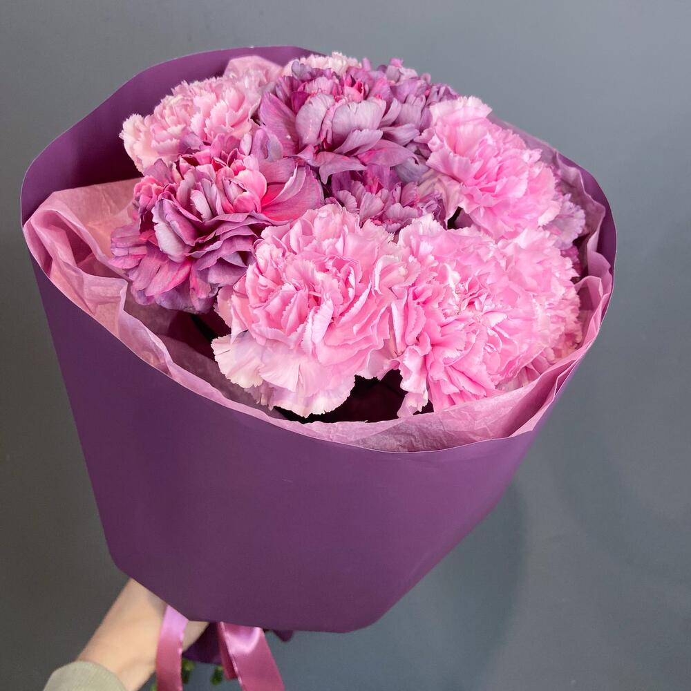 Букет из 11 розовых и бордовых гвоздик