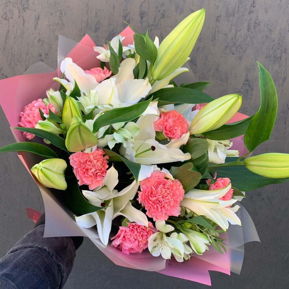 Категории: Альстромерии, Гвоздики, Лилии