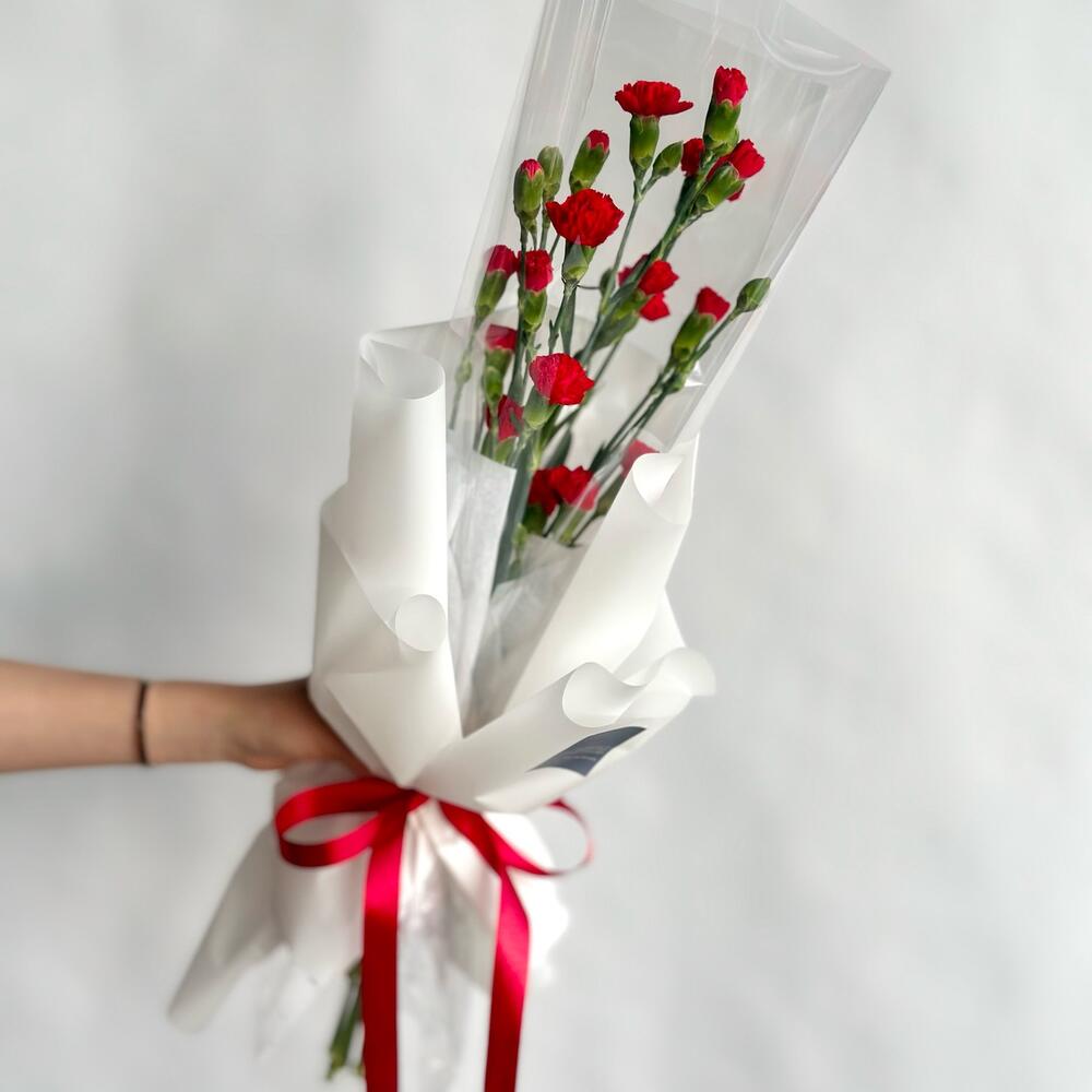 Букет красных кустовых гвоздик