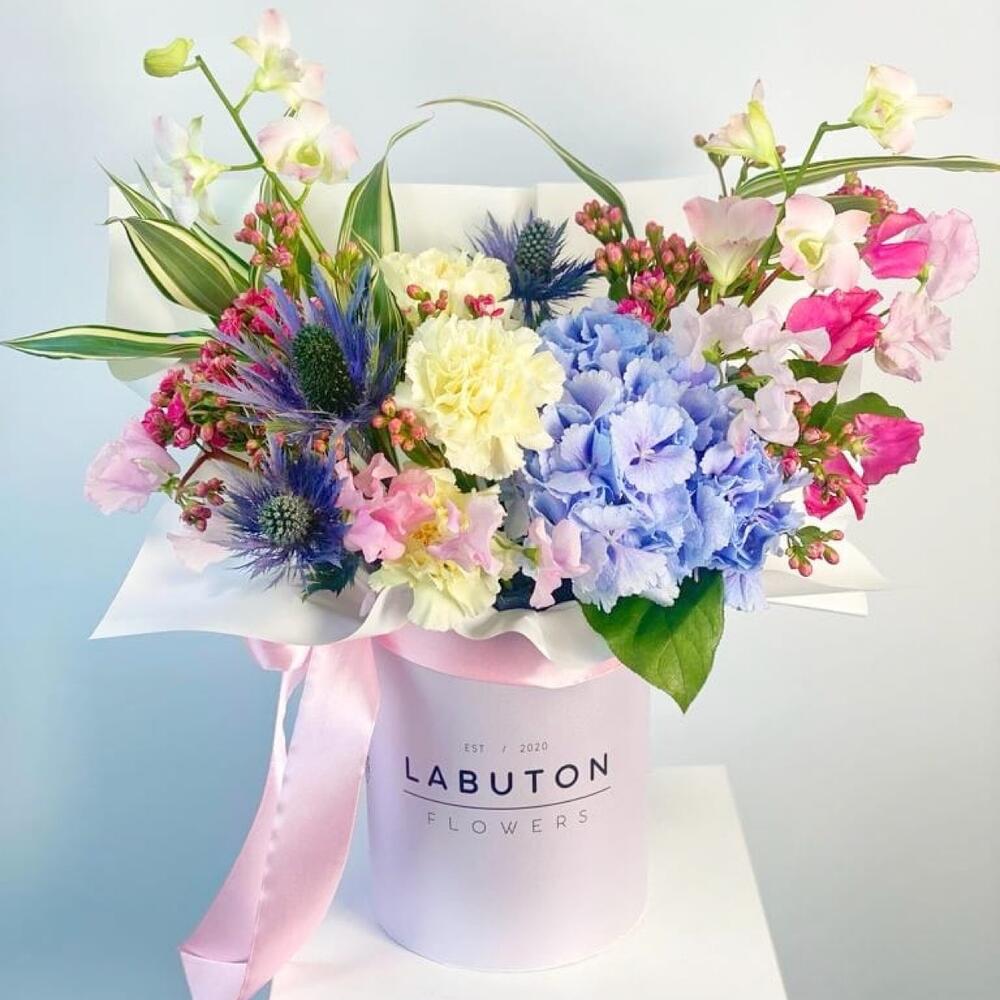 Альстромерии, Гвоздики, Кустовые розы, Лизиантусы, Розы, Хризантемы