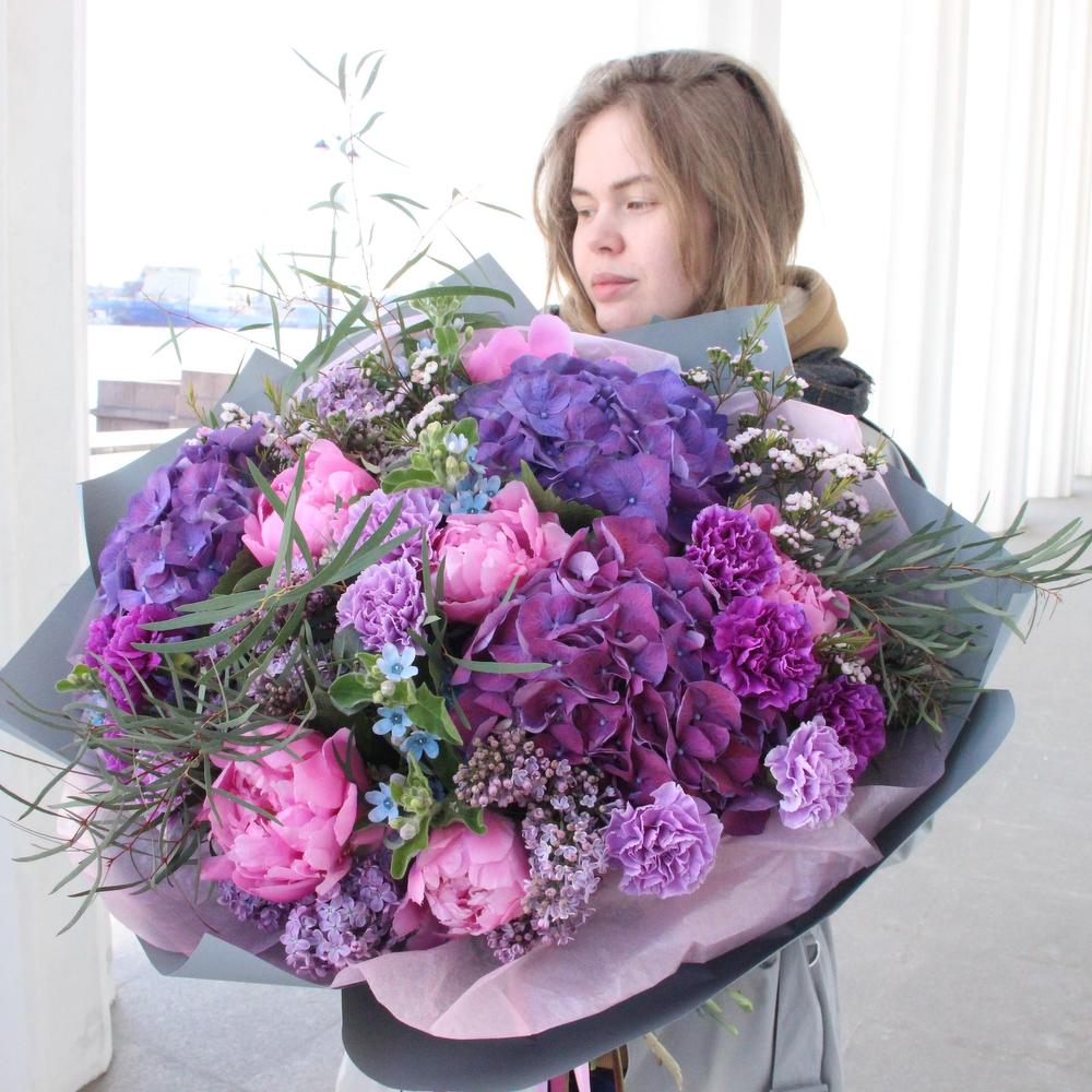Лиловый поцелуй - Гортензии, пионы и восковой мирт