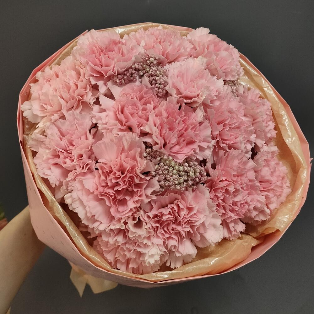 11 нежных гвоздик с эвкалиптом