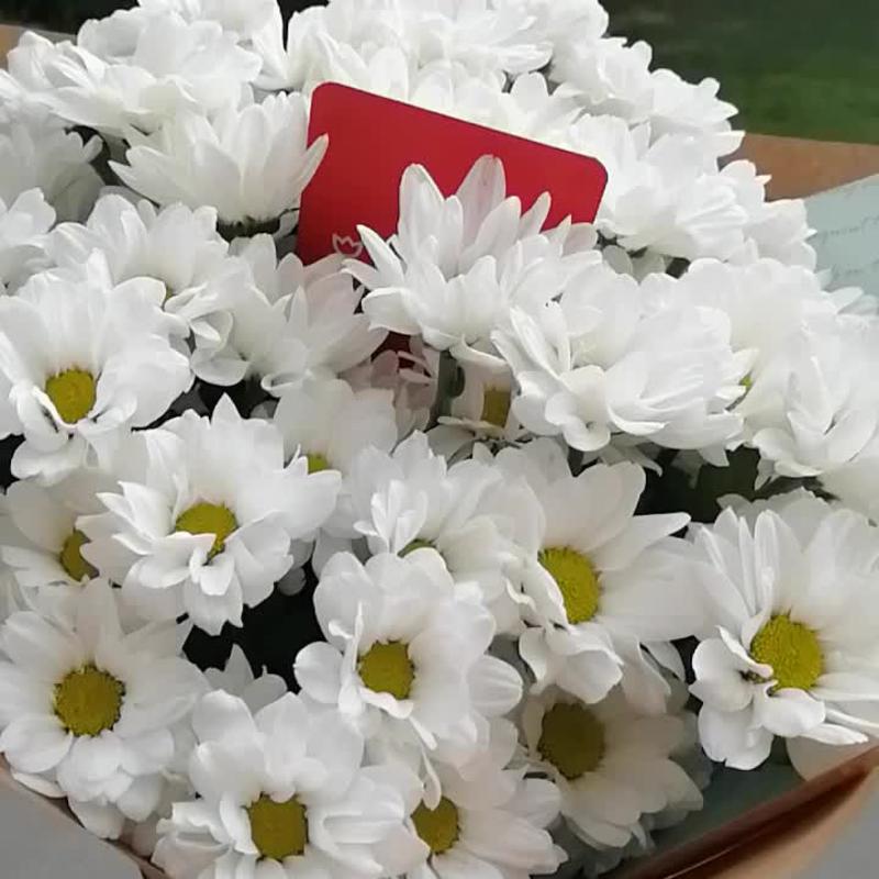 Лента – 4 шт.Хризантема кустовая – 7 шт.Крафт – 3 шт.