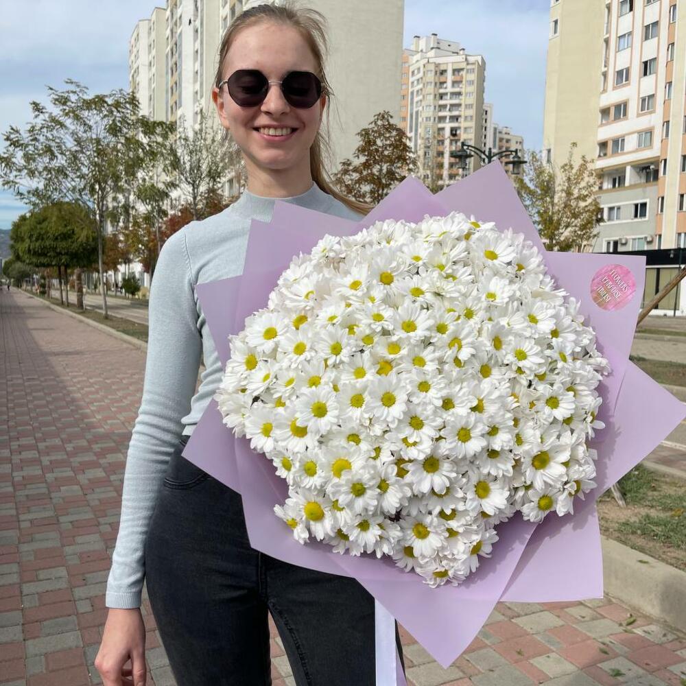 хризантем – 33 шт. Упаковка – 1 шт. Атласная лента – 1 шт.