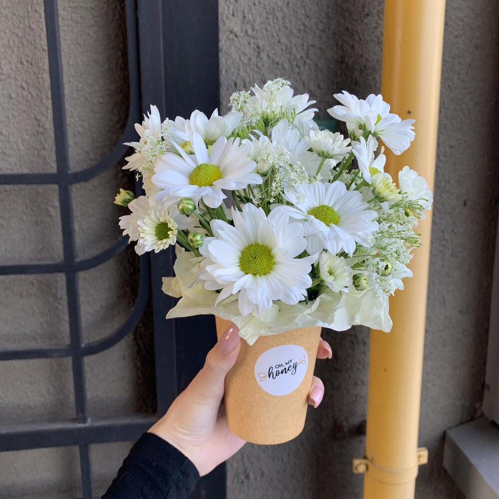 Лимониум – 1 шт.Оазис – 1 шт.Сантини – 1 шт.Стакан – 1 шт.хризантема кеннеди – 1 шт.