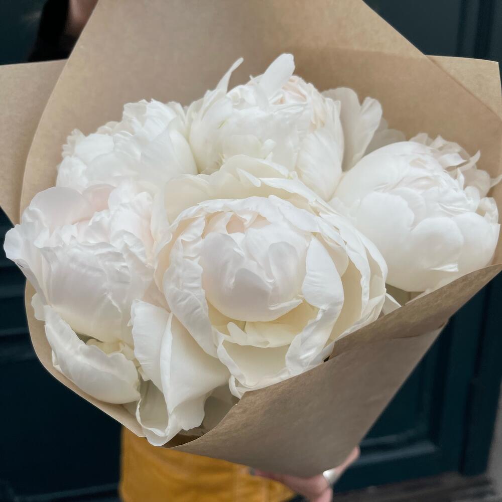 Крафт – 1 шт.пионы белые – 5 шт.
