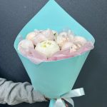 “Атлас☁️” – цветочная композиция с зефиром в деревянном ящике