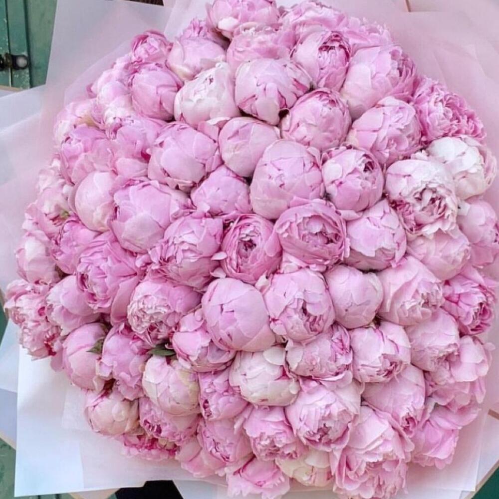 Пион розовый – 51 шт.Упаковка дизайнерская – 1 шт.Лента атласная – 2 шт.Открыточка с вашими пожеланиями – 1 шт.хорошее настроение – 100 шт.инструкция по уходу за цветами – 1 шт.коробка переноска – 1 шт.Кризал – 1 шт.