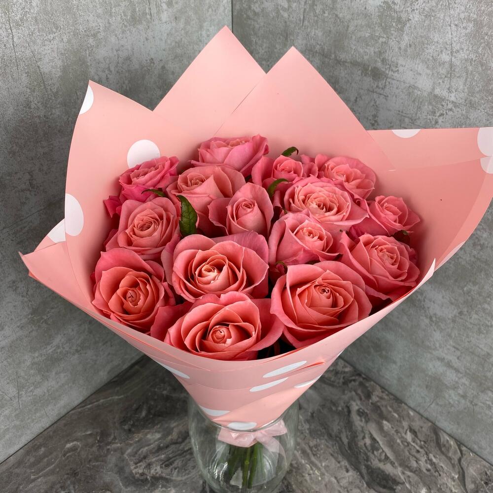 Роза – 15 шт.Упаковка дизайнерская – 3 шт.Атласная лента – 1 шт.