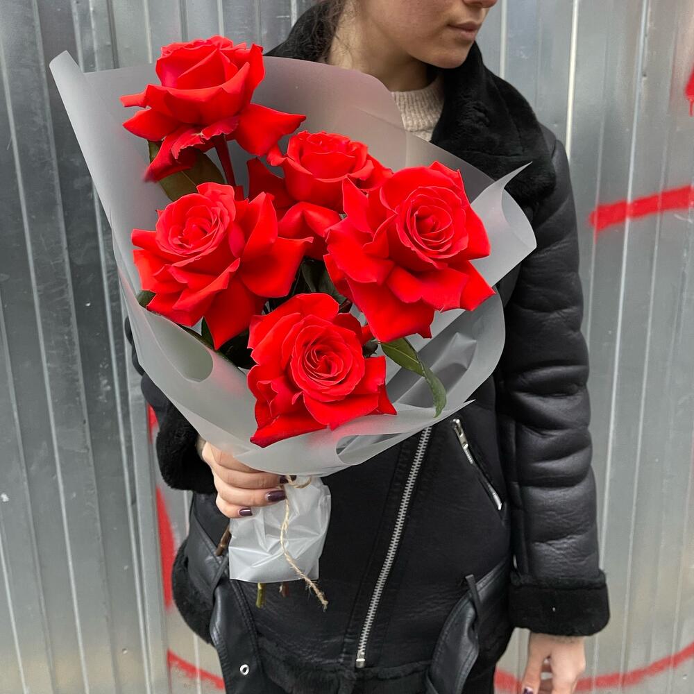 Алые розы в стильной упаковке