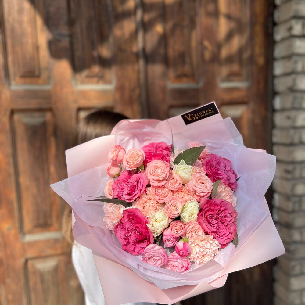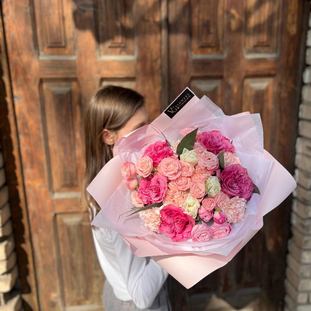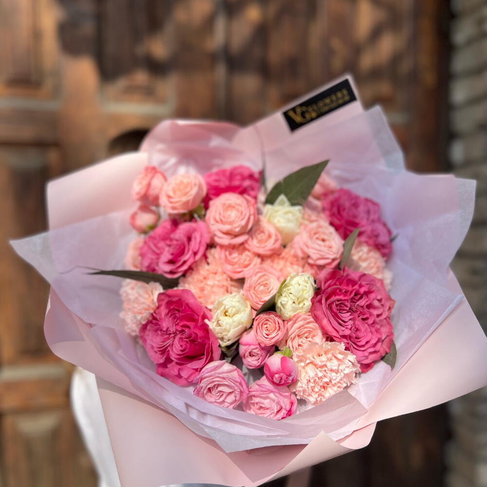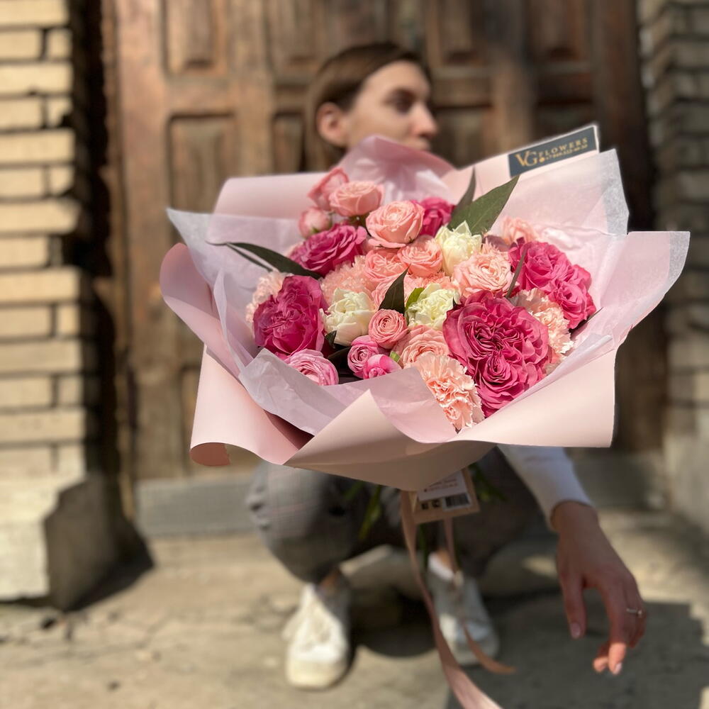 Гвоздики, Кустовые розы, Лизиантусы, Пионовидные розы, Розы
