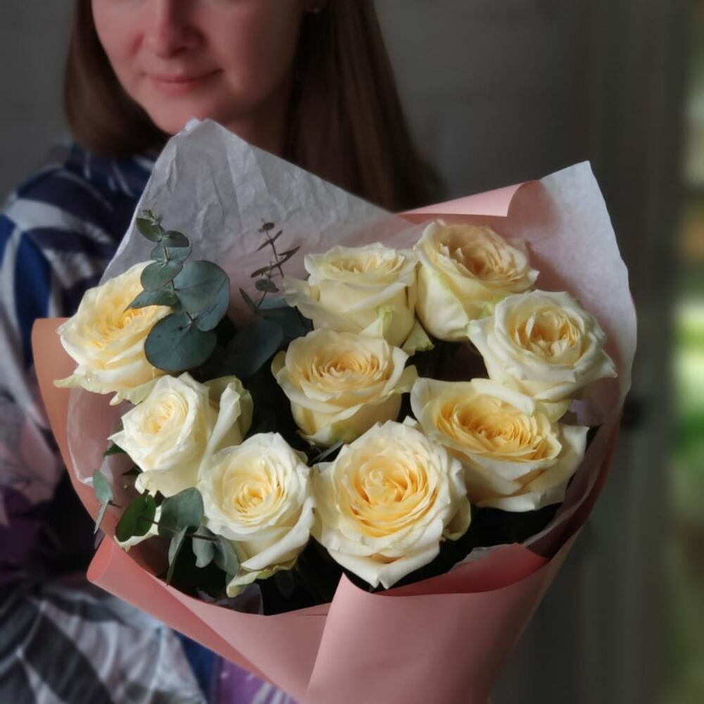Эвкалипт – 1 шт.Роза Эквадор – 9 шт.Упаковка – 1 шт.