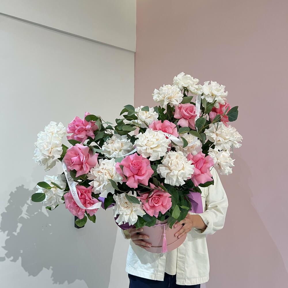 Альстромерии, Кустовые розы, Лизиантусы, Пионовидные розы, Розы, Ромашки