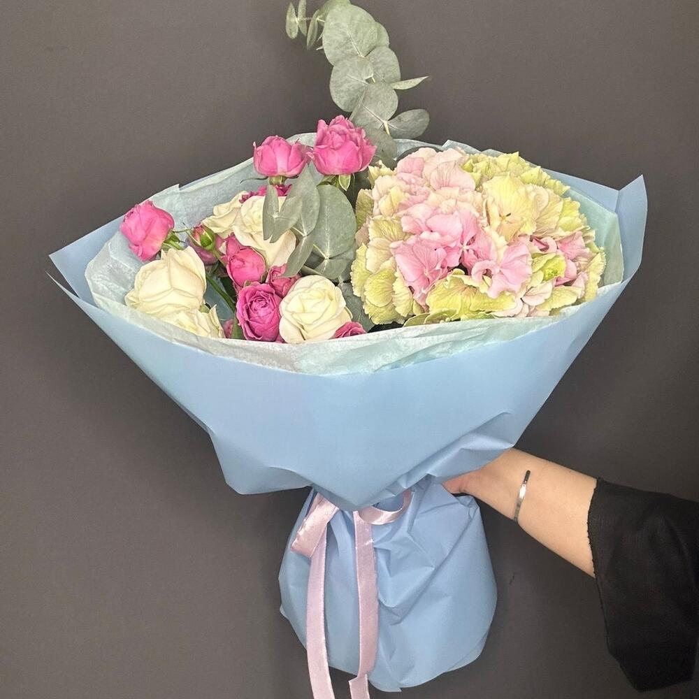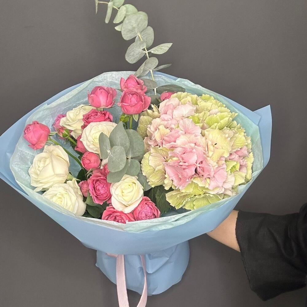 Гвоздики, Кустовые розы, Пионовидные розы, Розы