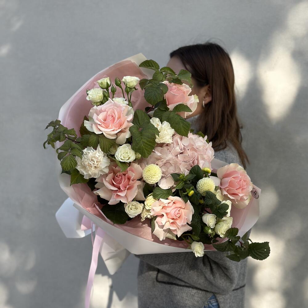 Гвоздики, Кустовые розы, Пионовидные розы, Розы