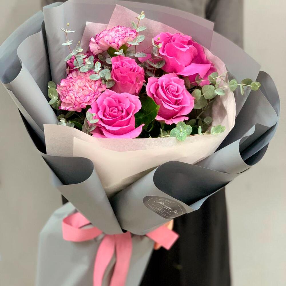 Гвоздики, Кустовые розы, Пионовидные розы, Розы