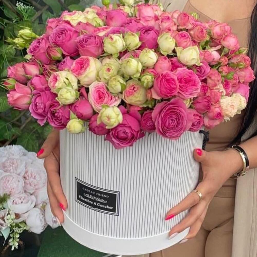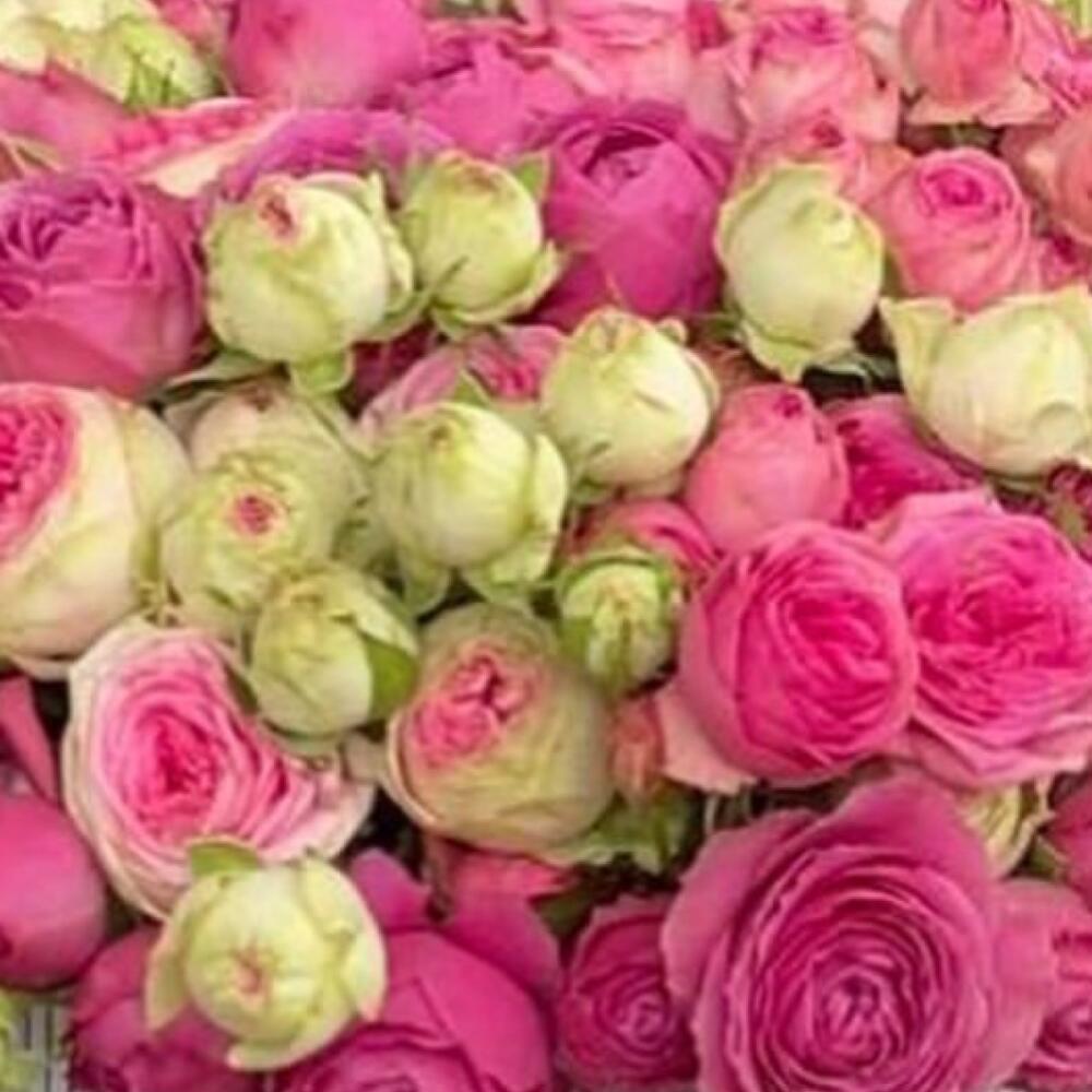 Пионовидная роза – 5 шт. Пионовидная кустовая роза – 9 шт.