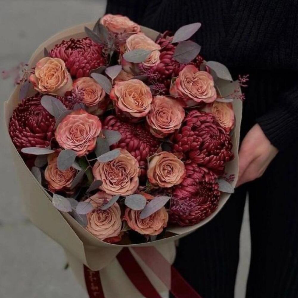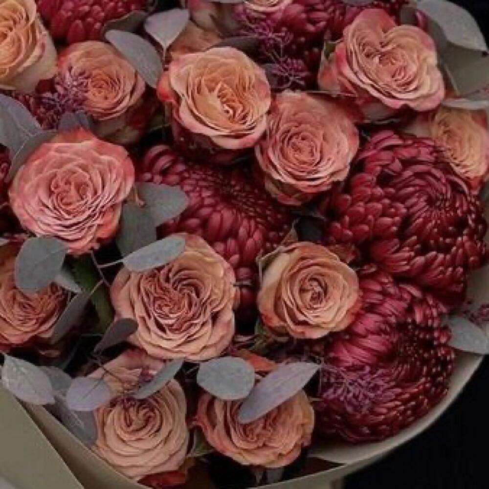 Гвоздики, Кустовые розы, Лизиантусы, Пионовидные розы, Розы