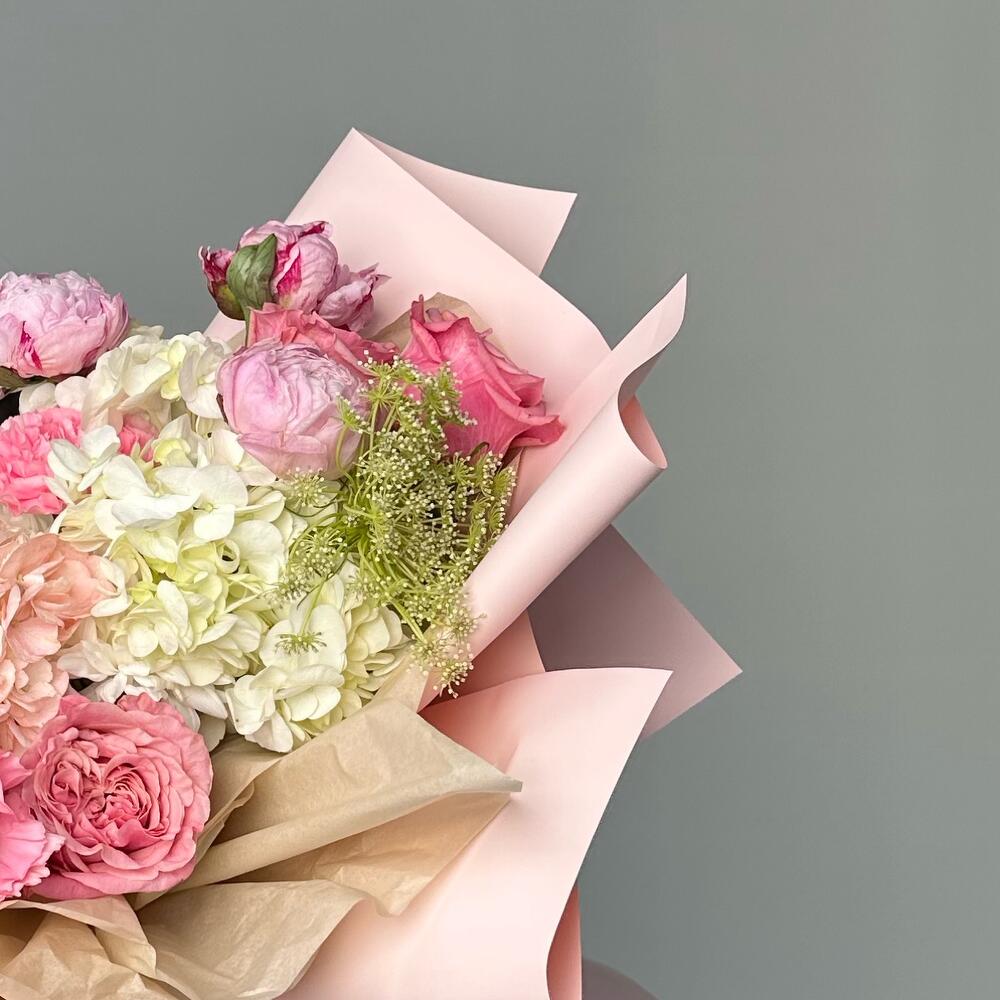 Гвоздики, Кустовые розы, Пионовидные розы, Розы