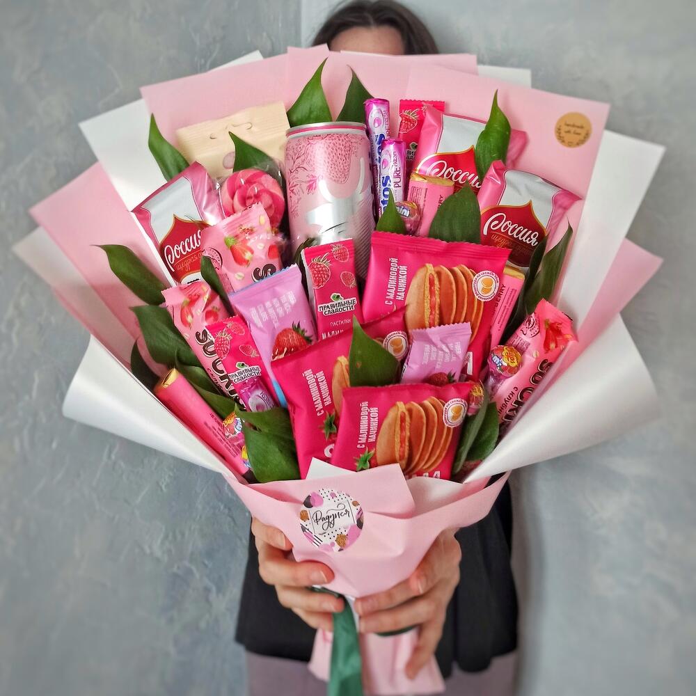 Леденец на палочке – 1 шт.рускус(зелень) – 22 шт.mentos pure – 3 шт.боржоми земляника – 1 шт.yota шарики с малиной – 1 шт.шоколад россия клубника и роза – 3 шт.basker wheels pancake малина – 3 шт.батончики so crispy клубника – 3 шт.батончики musler клубника в йогурте – 3 шт.малиновые пастилки – 3 шт.chupa chups mini клубника – 7 шт.шоколад ozera малина – 3 шт.