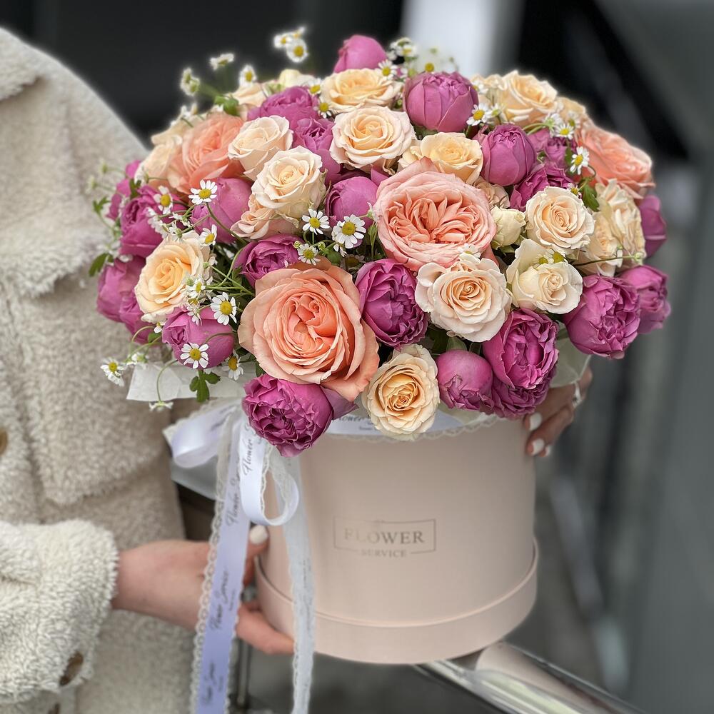 “В твоих глазах”: нежная шляпная коробка с французскими розами
