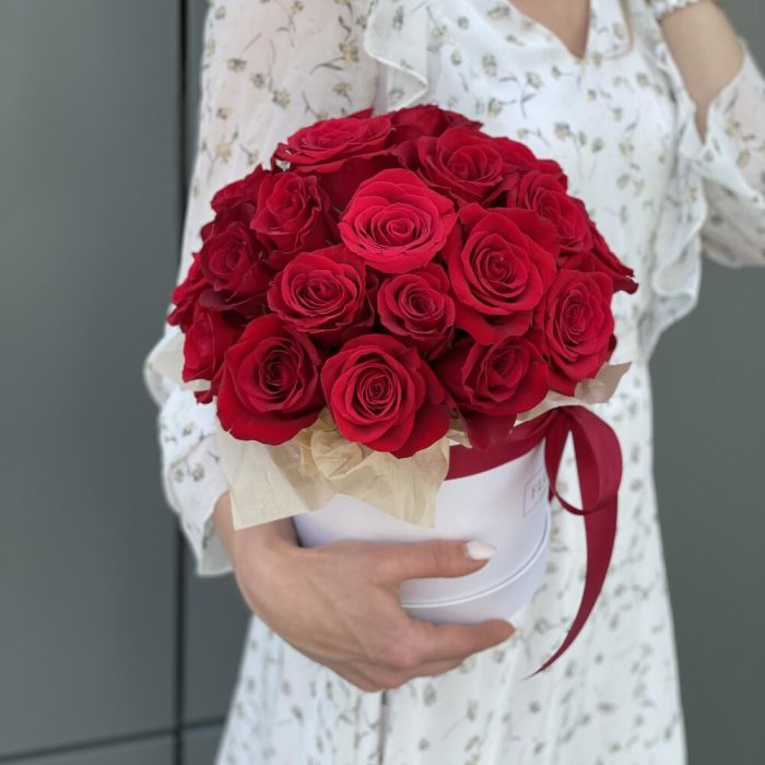 Коробка шляпная из 25 красных роз