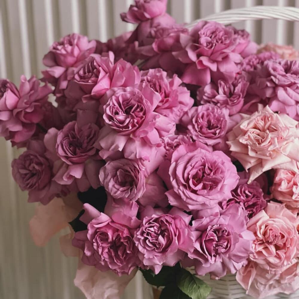 Роза пионовидная – 101 шт.Корзина – 1 шт.