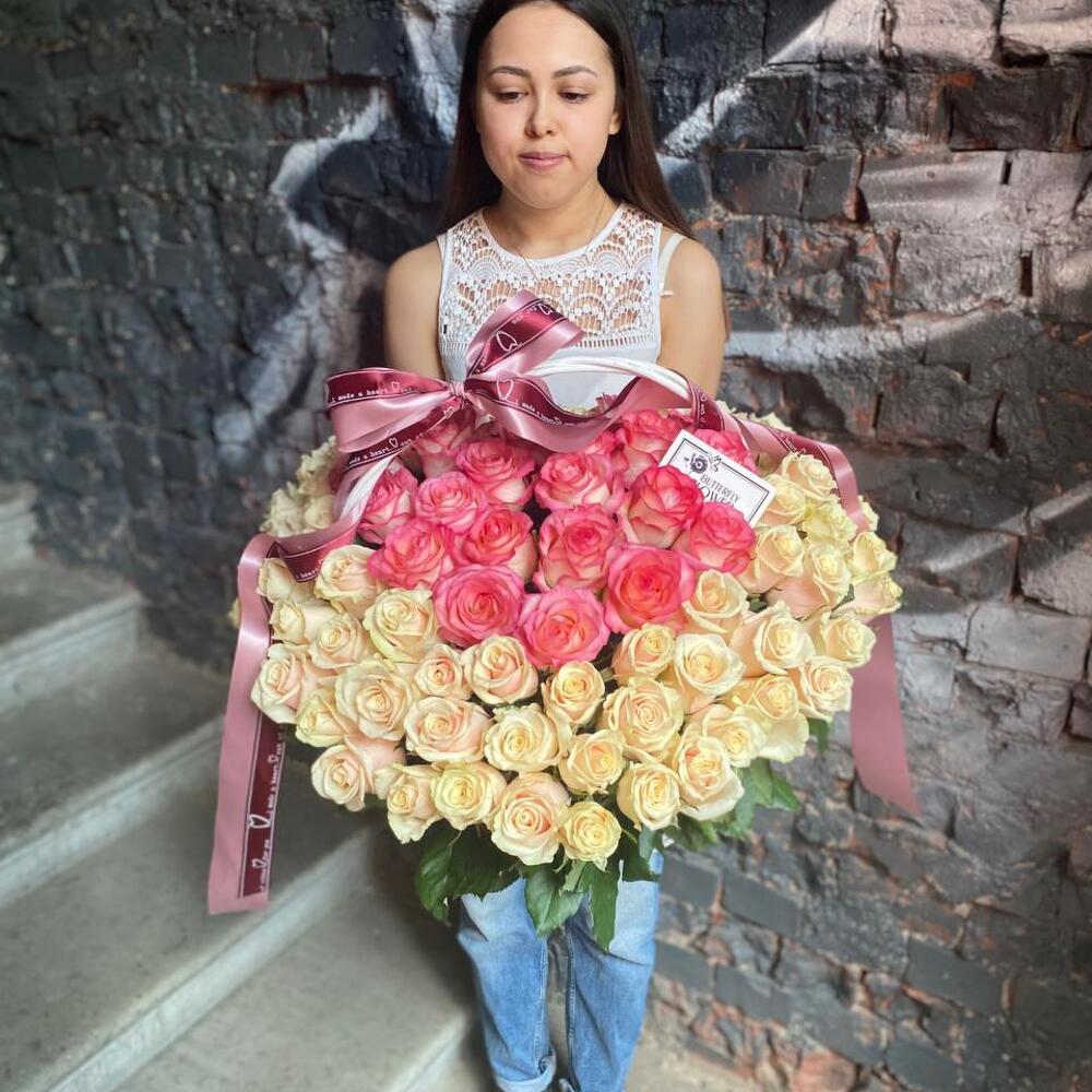 Корзина из 101 розы микс