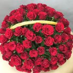 Метки: 101 роза, от 5000 руб, цветы в корзине