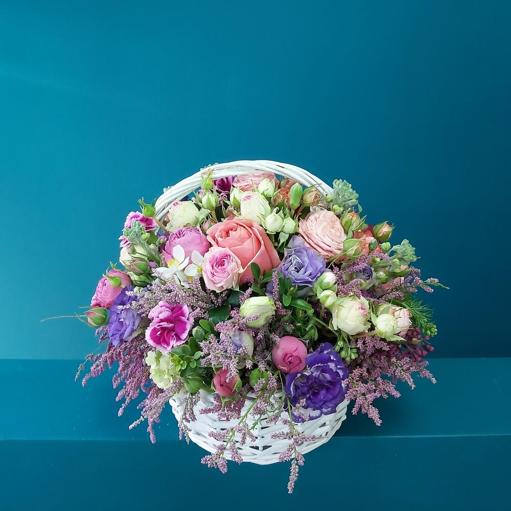 Альстромерии, Гвоздики, Кустовые розы, Лизиантусы, Розы, Хризантемы