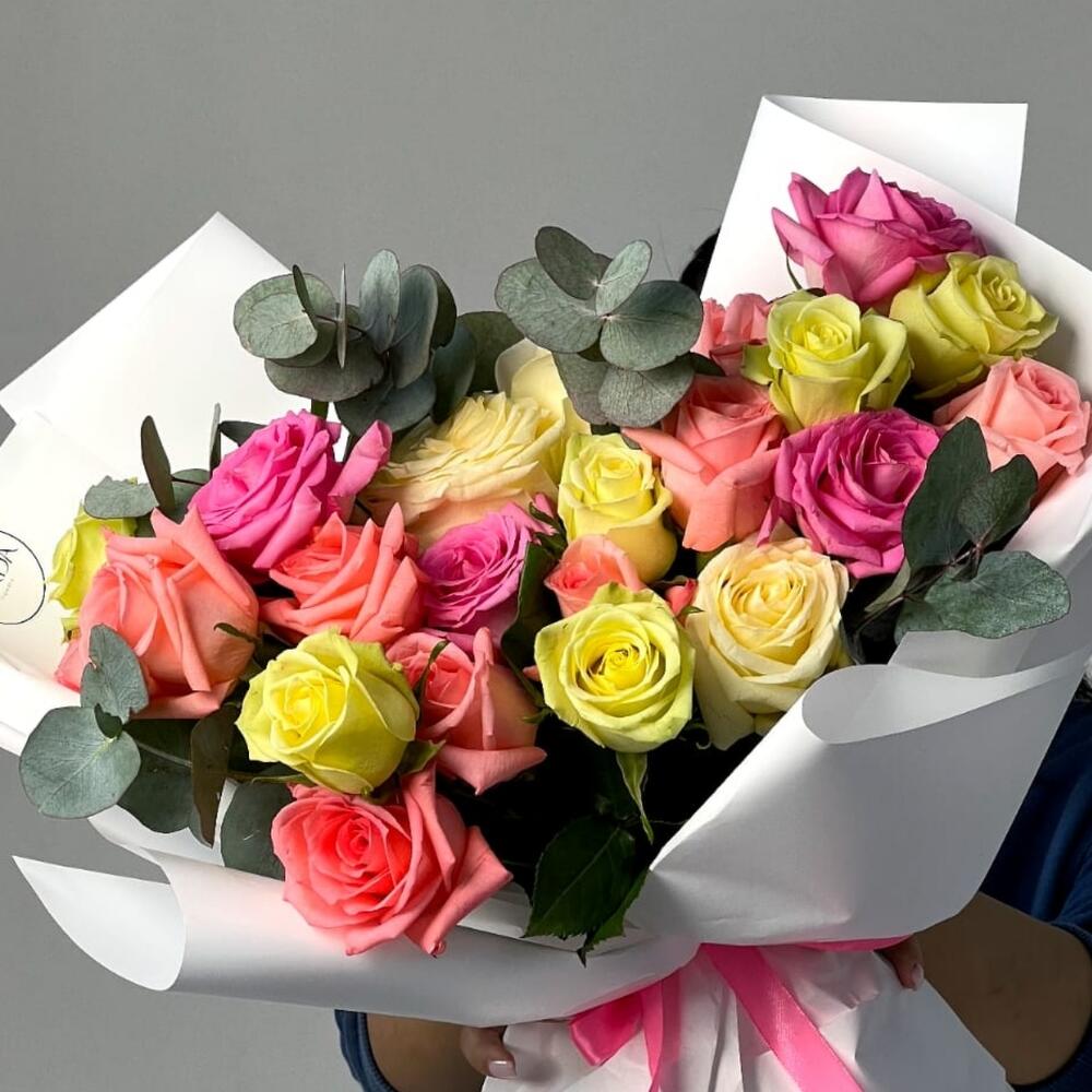 Гвоздики, Лизиантусы, Розы, Тюльпаны