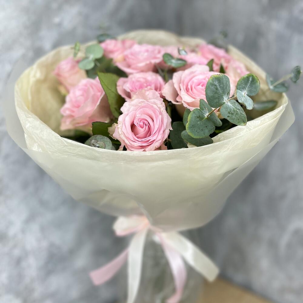 Нежно розовые розы с эвкалиптом