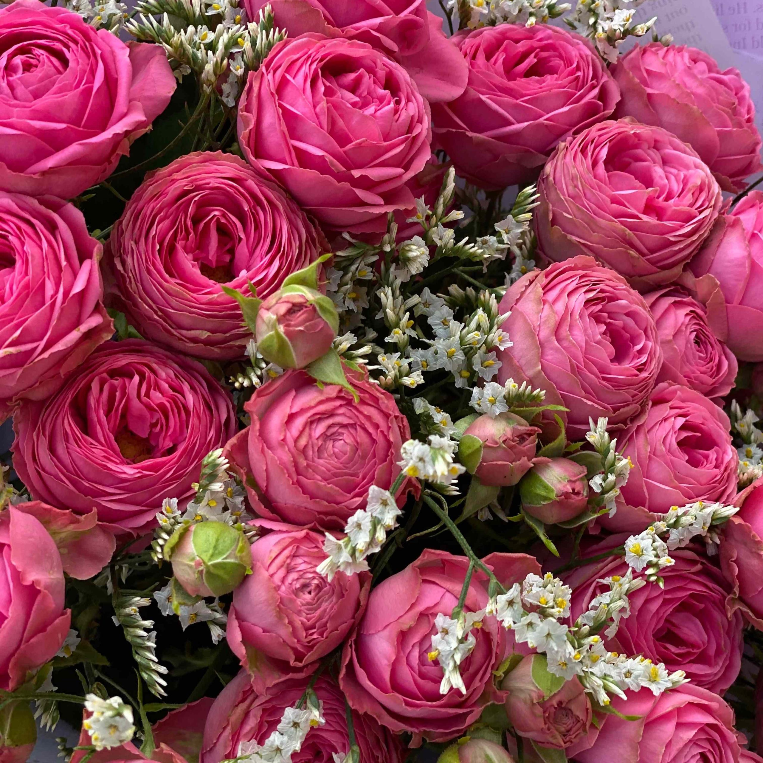 Гвоздики, Кустовые розы, Лизиантусы, Пионовидные розы, Розы