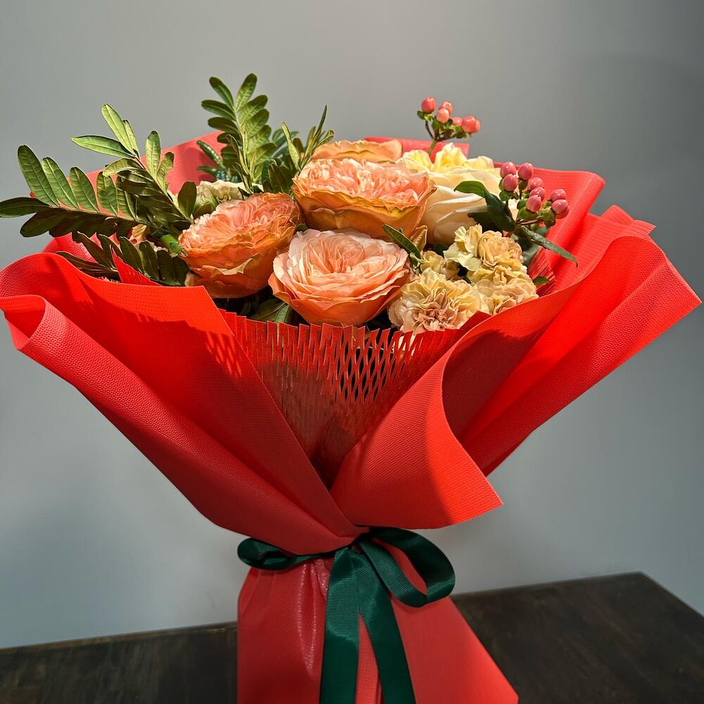 Гвоздики, Кустовые розы, Пионовидные розы, Розы