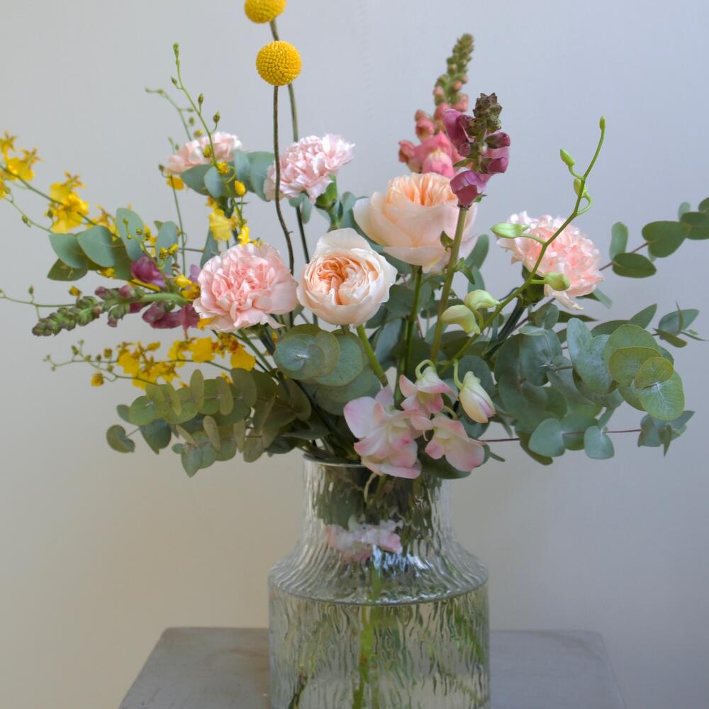 Гвоздики, Кустовые розы, Пионовидные розы, Розы