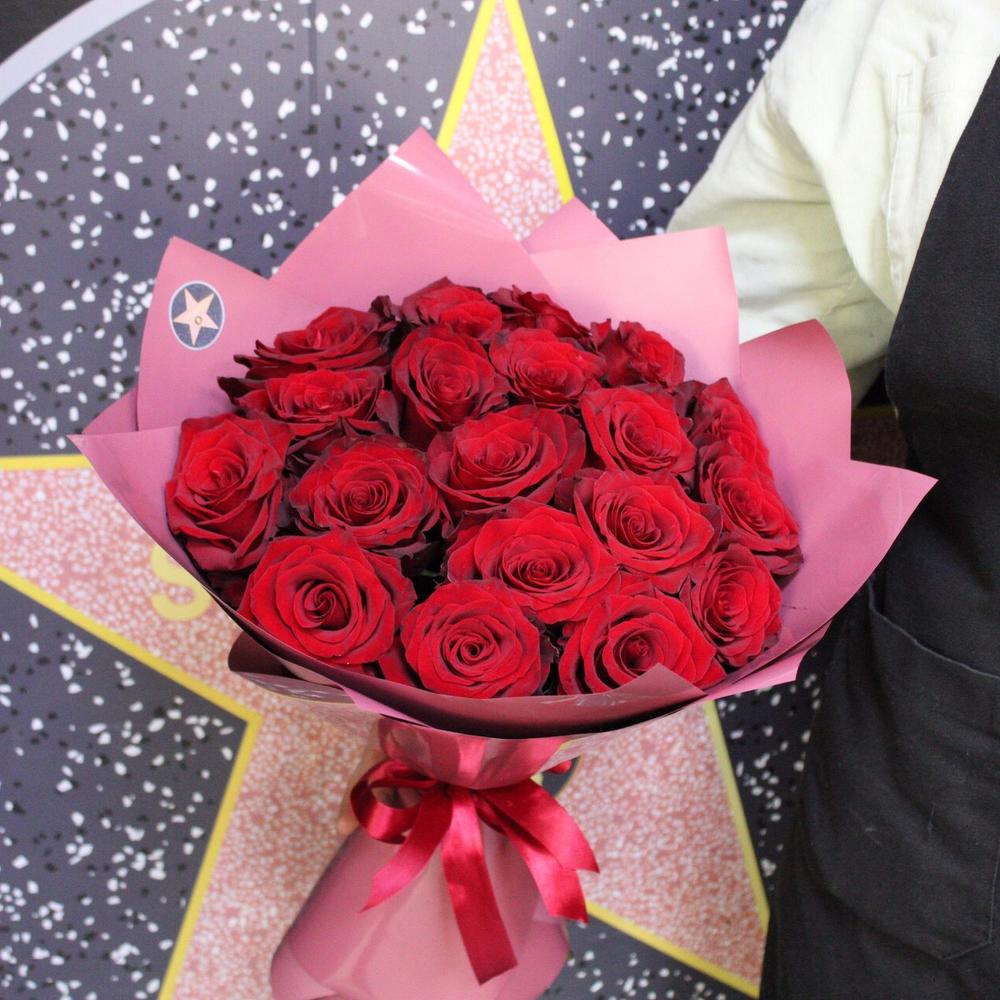 Лента атласная – 1 шт.Роза Эксплорер – 19 шт.Пленка дизайнерская – 3 шт.
