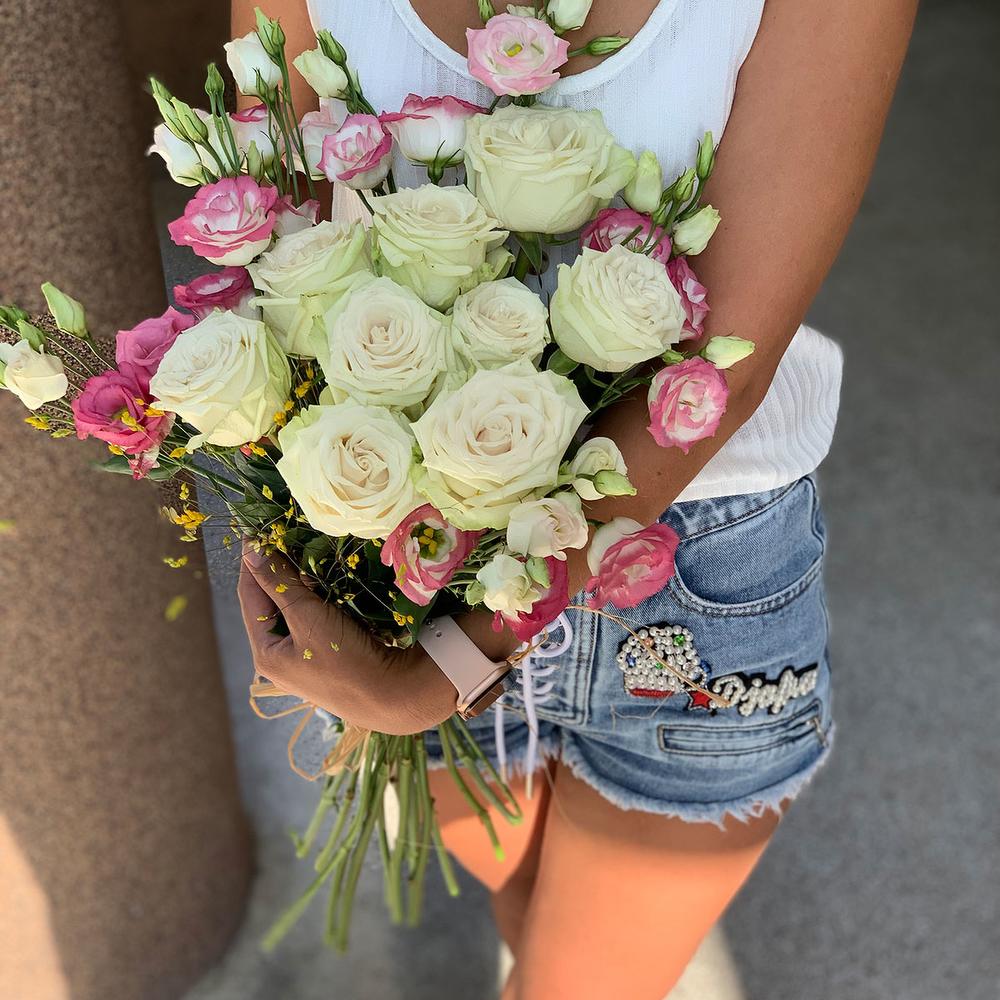 Розовые эустомы и белые розы