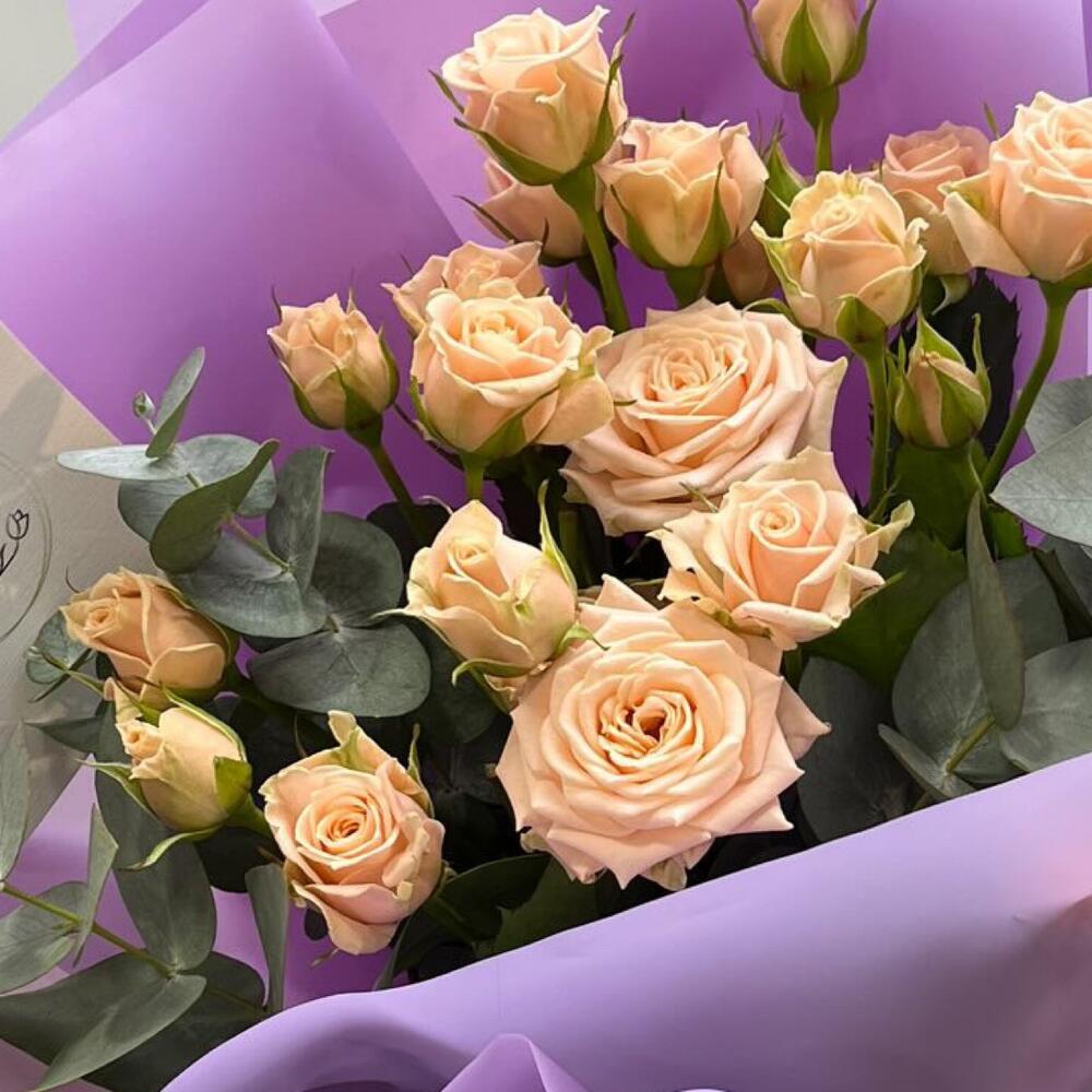 Гвоздики, Кустовые розы, Лизиантусы, Пионовидные розы, Розы