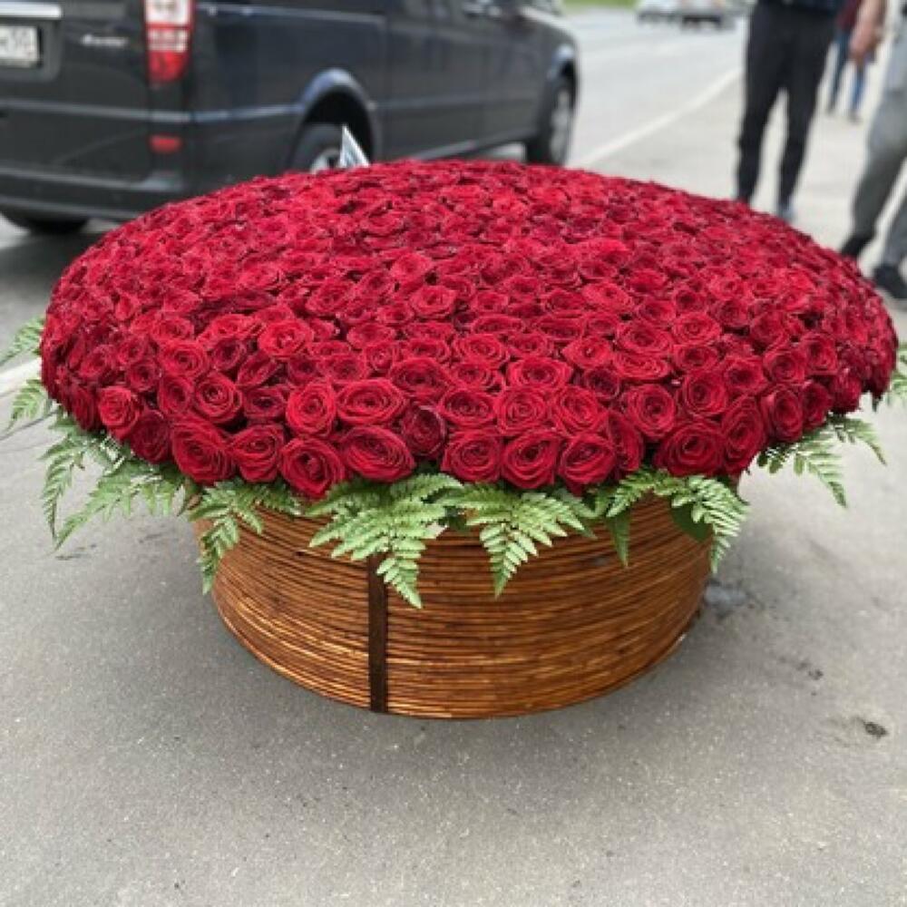 Метки: 1001 роза, от 5000 руб, Роза 90 см, Розы в корзине