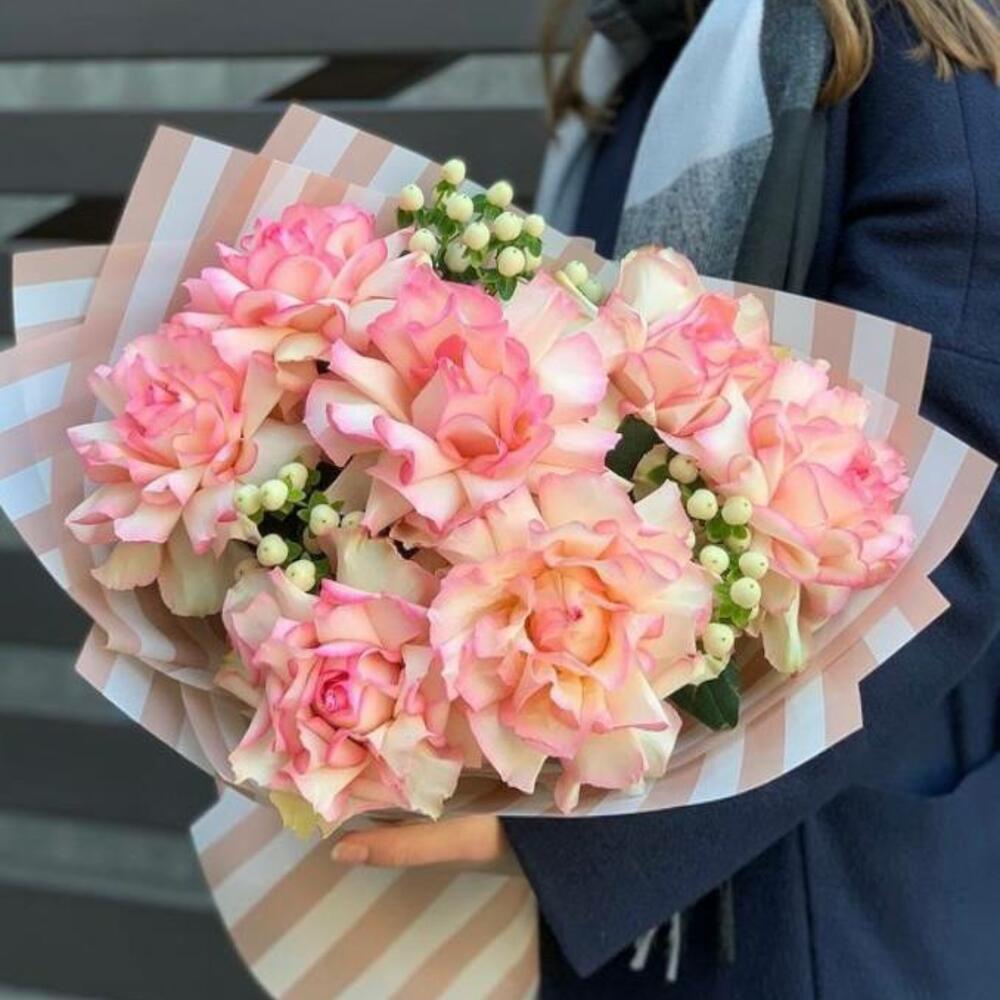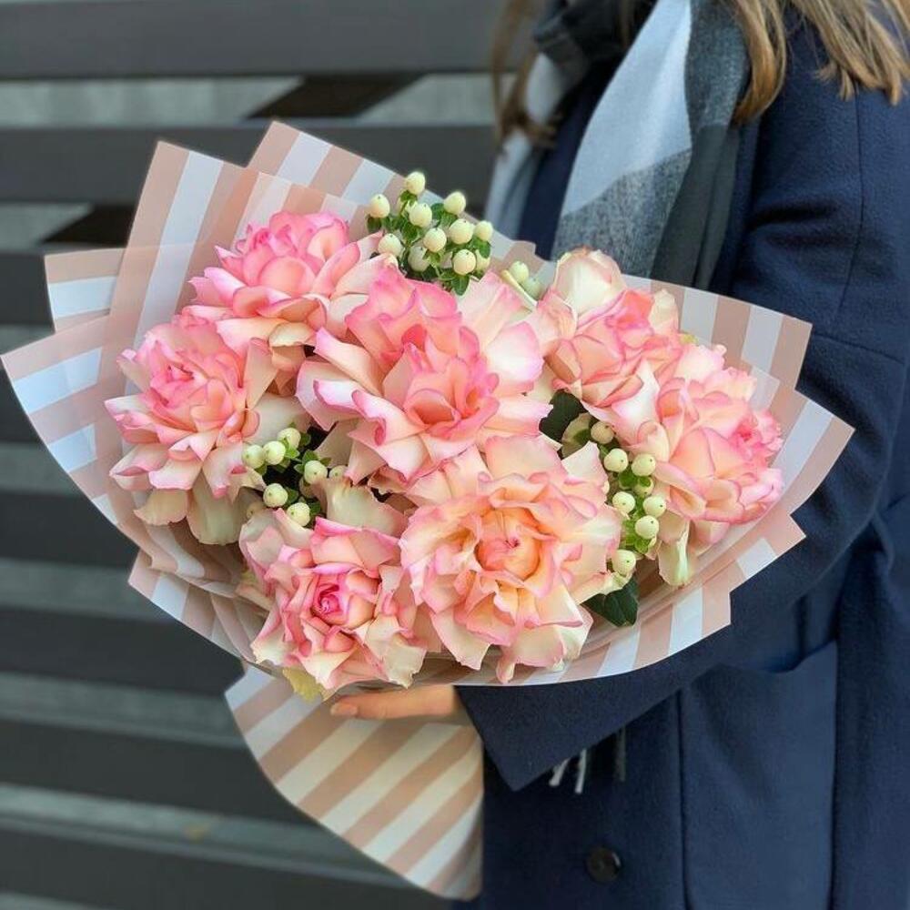 Гвоздики, Кустовые розы, Лизиантусы, Пионовидные розы, Розы