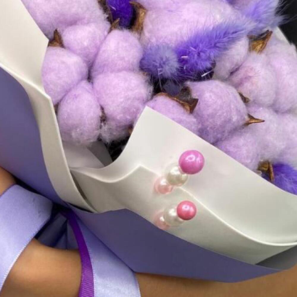 «Лавандовое созвездие» Букет из розы, гвоздики, статица и хлопка