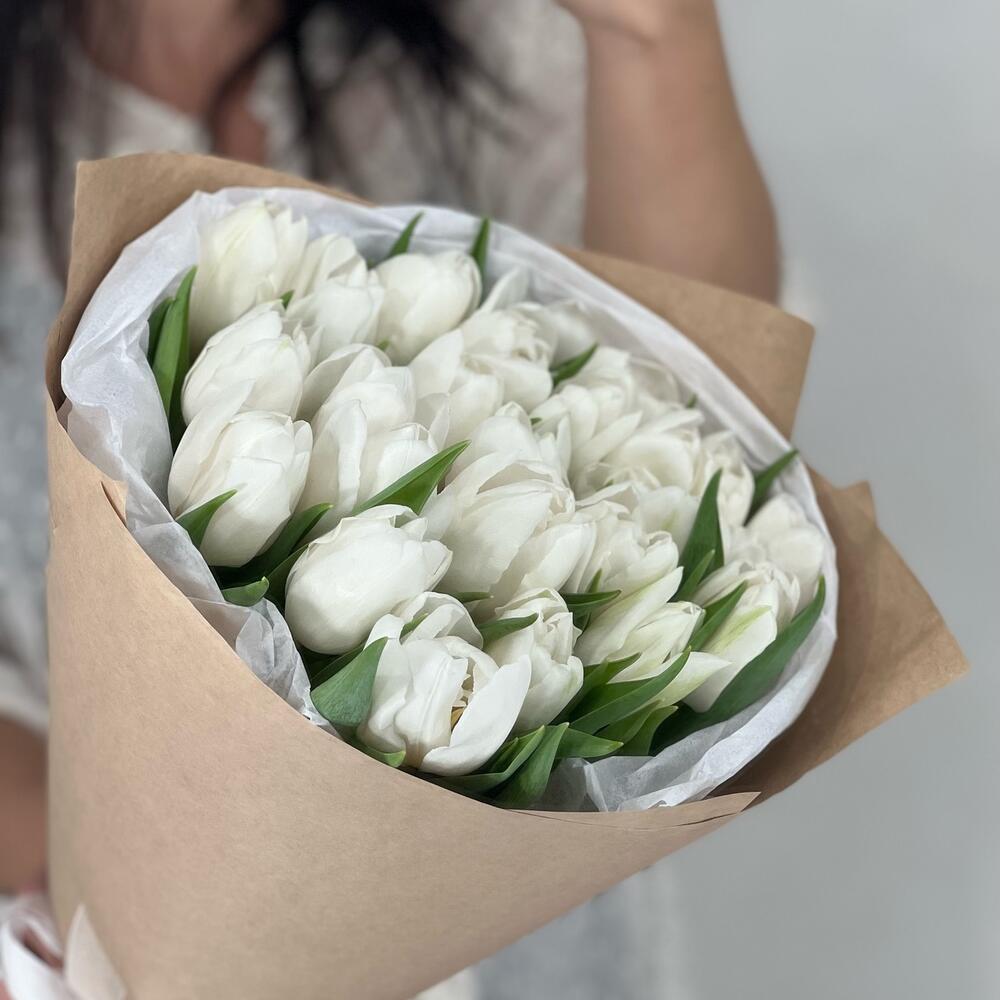 Лента – 2 шт.Упаковка – 2 шт.пионовидные тюльпаны белые – 25 шт.
