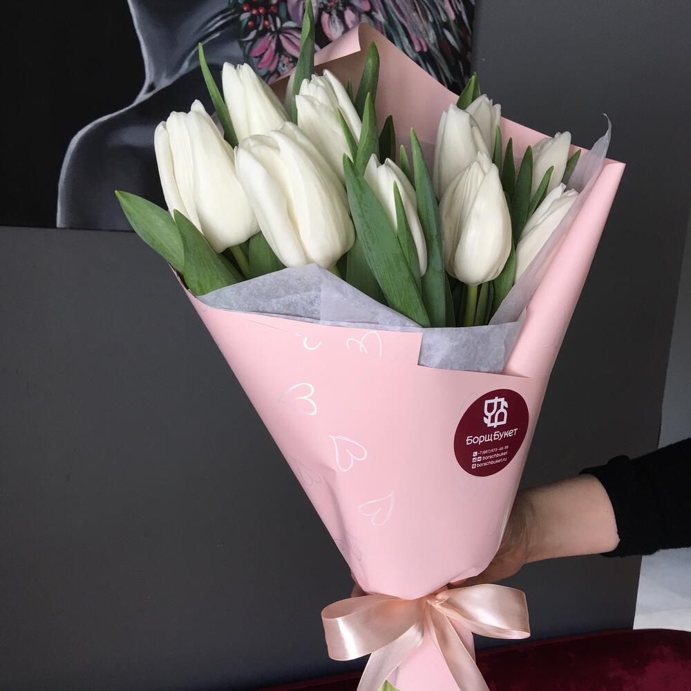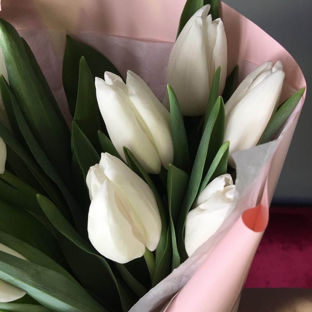 Букет из 11 белых гладких тюльпанов
